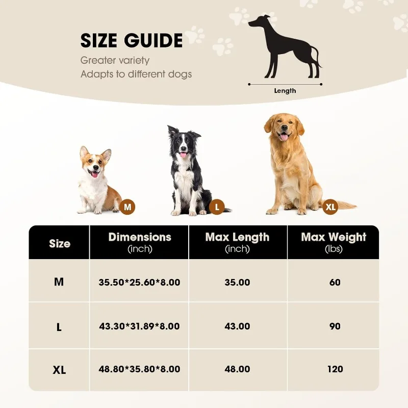 - 【Size Guide】This large outdoor dog bed ( 43.30"*31.90"*8") is suitable for medium / large dogs up to 90 lbs, The classic pet cot design gives your fluffy friend plenty of room to sprawl out in any position, If you want your pet to have more room to lie down on the elevated dog bed, A larger dog bed is recommended.